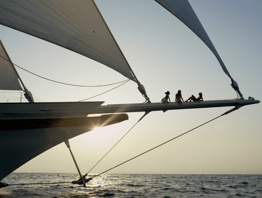 Oggi è l’armatore anche di Hanuman (anche lui in vendita), replica del J-Class Endeavour II. Ma torniamo ad Athena e diamo un po’ di numeri: è lunga 90 metri, larga 12,20, ha 2.600 metri quadrati di vele, tre alberi alti 58,80 metri, oltre 50 winch e captive, 20 sono gli uomini di equipaggio e 10 gli ospiti, per costruirla ci sono voluti 5 anni.