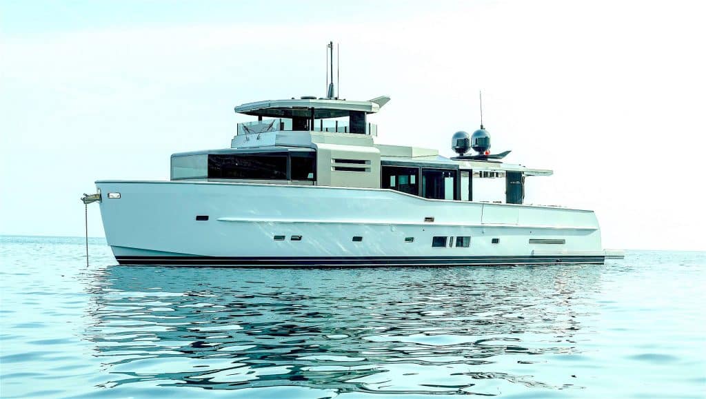 Arcadia 85S. Tradotta in pochi essenziali numeri significa una barca di quasi 26 metri capace di viaggiare, con due motori MAN diesel da R6-730hp ognuno, a 18 nodi ma che alla veloctà dislocante di 12 garantisce una autonomia di 850 miglia. Il nuovo yacht del cantiere partenopeo è stato varato poche settimane fa e consegnato a un felice armatore statunitense.