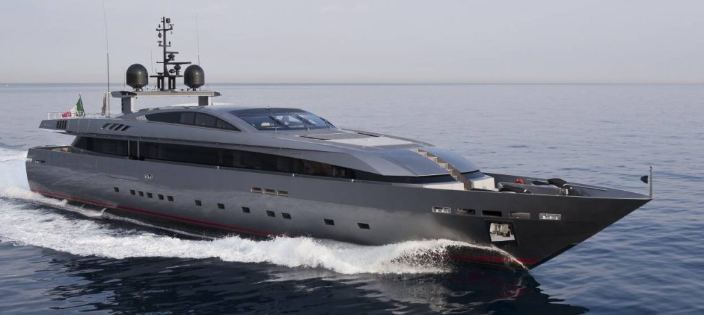Gli interni si ispirano chiaramente all’aviation design e si distinguono per l’accostamento di diversi materiali – acero sicomoro, acciaio e pelle – che si combinano in sfumature cromatiche morbide e raffinate, giocate sui toni del panna, beige e grigio. I mobili, sia indoor sia outdoor, sono custom made: i divani dalle linee sinuose foderati in lino Rubelli color tortora, i coffee table in acciaio, vetro e pelle nabuk ed il tavolo dining in wengè scuro ed acciaio satinato, le lampade che accostano acciaio, shantung di seta e pelle nabuk. L’acciaio satinato delinea con sobria eleganza le forme di maniglie, masselli e anti rollii.