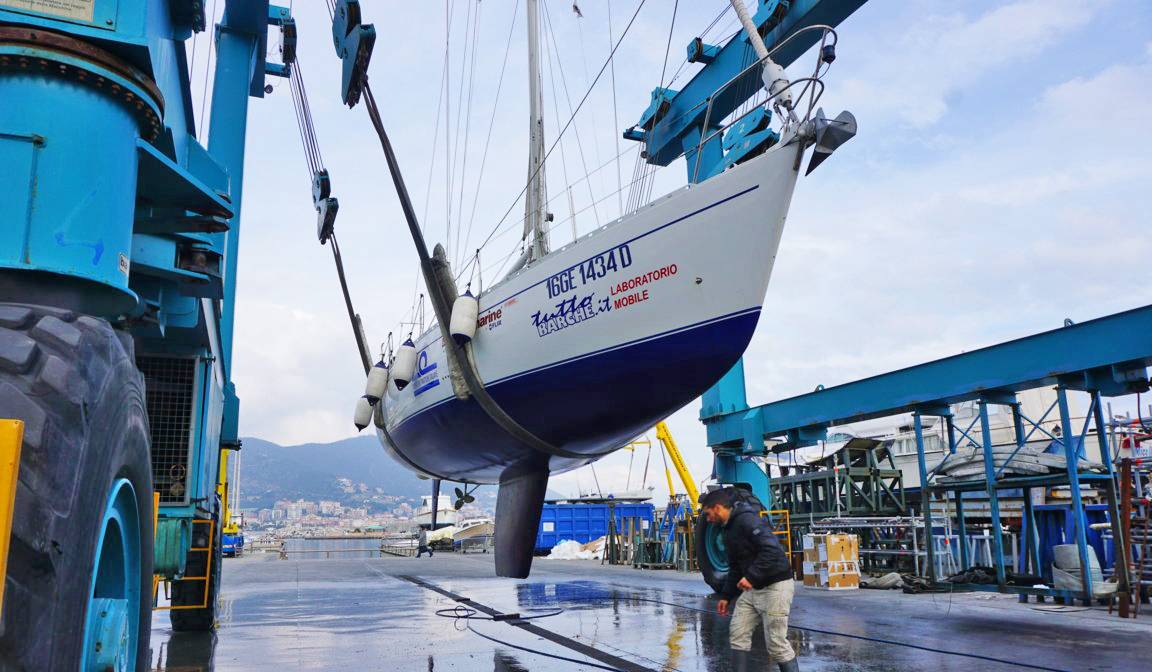Anche la barca della redazione, un glorioso Comet 460 del 1986 progetto Finot che abbiamo trasformato in un vero e proprio laboratorio per i test di attrezzature e accessori, ha subito la stessa sorte nei giorni scorsi. La barca è stata alata presso il nostro centro prove, l’Alpha Shipyard nel Marina di Varazze, e prima di procedere ai lavori di carenaggio abbiamo curiosato sotto lo scafo.