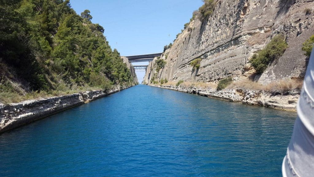 Un taglio netto, dato da mano ferma con una lama affilata. Così appare il canale di Corinto. Un solco scavato nella roccia lungo poco più di 3 miglia e largo 25 metri. Una sottile ferita capace di tagliare in due la Grecia, trasformare il Peloponneso in un’isola e mettere in comunicazione due mari, lo Ionio e l’Egeo.