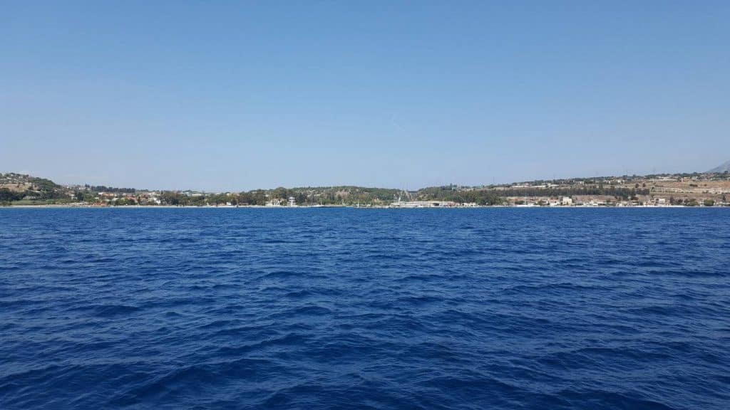 Provenendo da Atene, dove abbiamo fatto scalo, occorre fare molta attenzione nell’attraversamento della grande rada del porto commerciale della capitale greca. Oltre al traffico di navi in avvicinamento e uscita, c’è il transito di traghetti molto veloci. Se lo si fa di notte, un vero pericolo è rappresentato da due relitti galleggianti, due vecchi traghetti abbandonati all’ancora e senza luci diffici da avvistare.