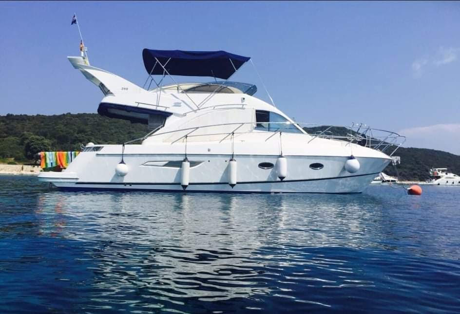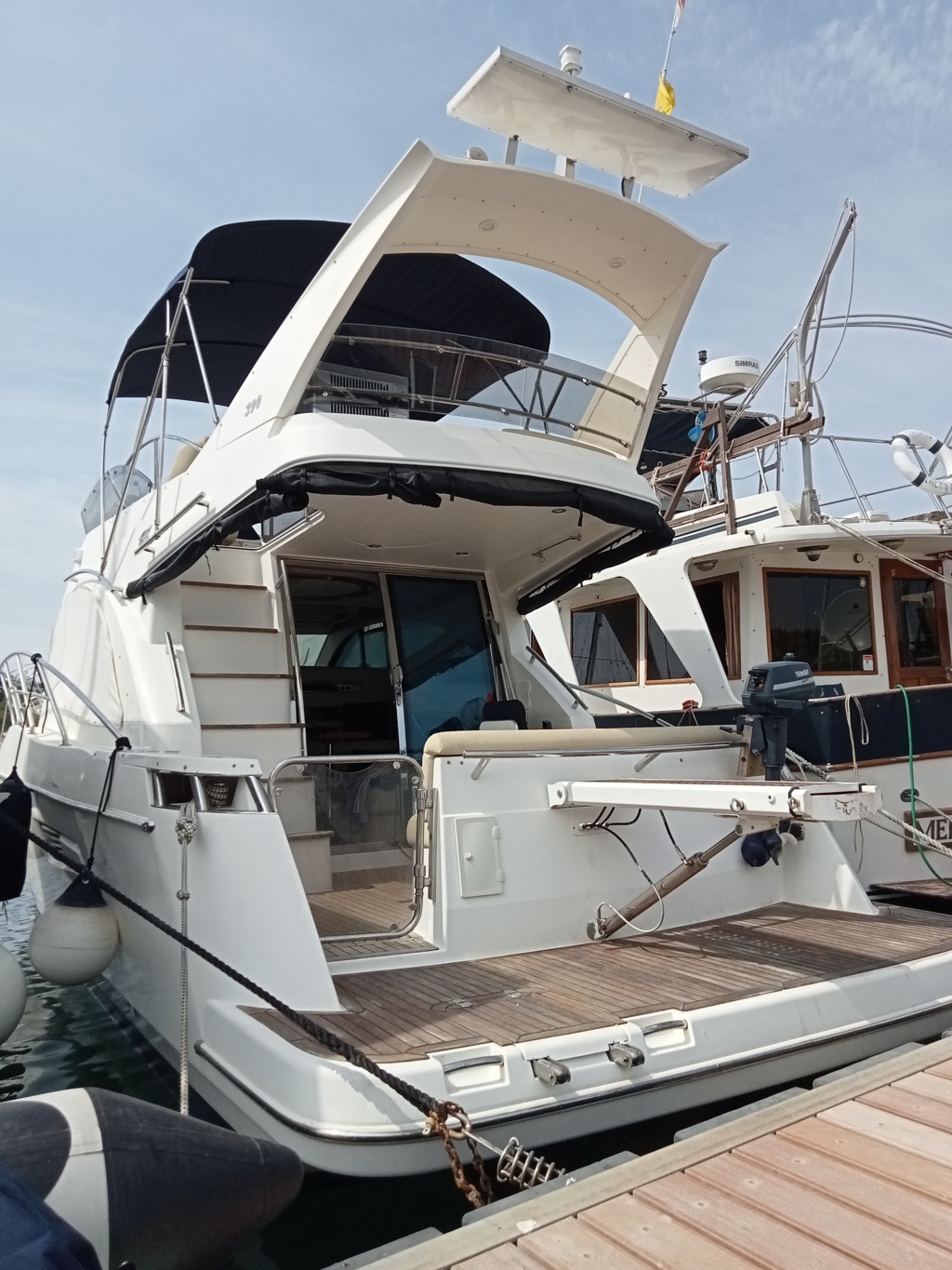 Embarcación Galeon 390 fly primera matriculación 2007. 2 camarotes para un total de 4 personas y dos cuartos de baño, uno completo y el segundo para la ducha. Flybridge muy grande, el mayor de su categoría. Bañera para 6 personas con teca, tanto en la plataforma de baño como en el fly.