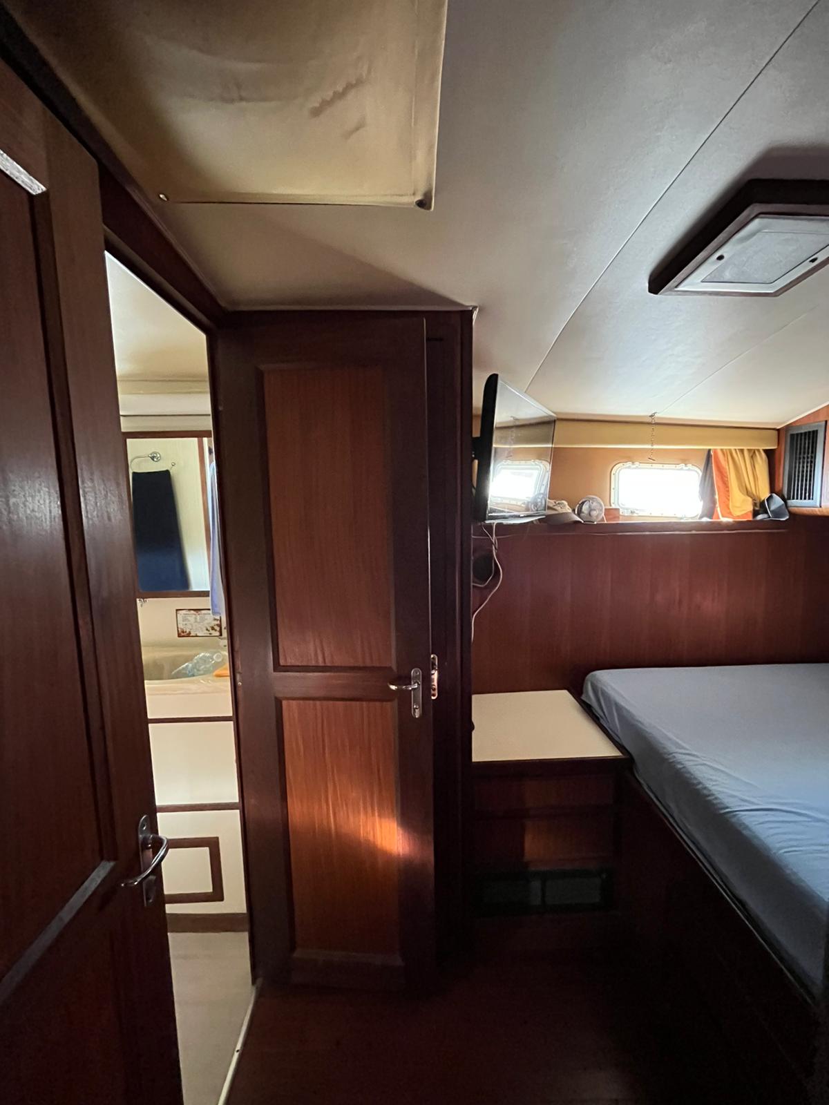 Barco.Hub ofrece en VENTA el maravilloso Hatteras 45, barco americano con conocidas cualidades de robustez y navegación. Un auténtico barco de pesca con 2 camarotes con 2 baños, gran bañera de popa y Fly bridge.El barco está en buen estado con trabajos de mantenimiento realizados recientemente.Eslora: 13,47Motores: 2 motores GM DETROIT de 535cv cada uno.Accesorios:- vhf- compás- sonda de profundidad- gps sonda de profundidad- radio- piloto automático- flaps- molinete eléctrico- 2 bombas de achique- pasarela eléctrica Besenzoni- tv- aire acondicionado- ducha- toldoPrecio 70000 euros + comisión de agencia¿Desea vender su barco? ¡¡¡Contáctenos!!! www.boathub.itcel. 331 202 8229