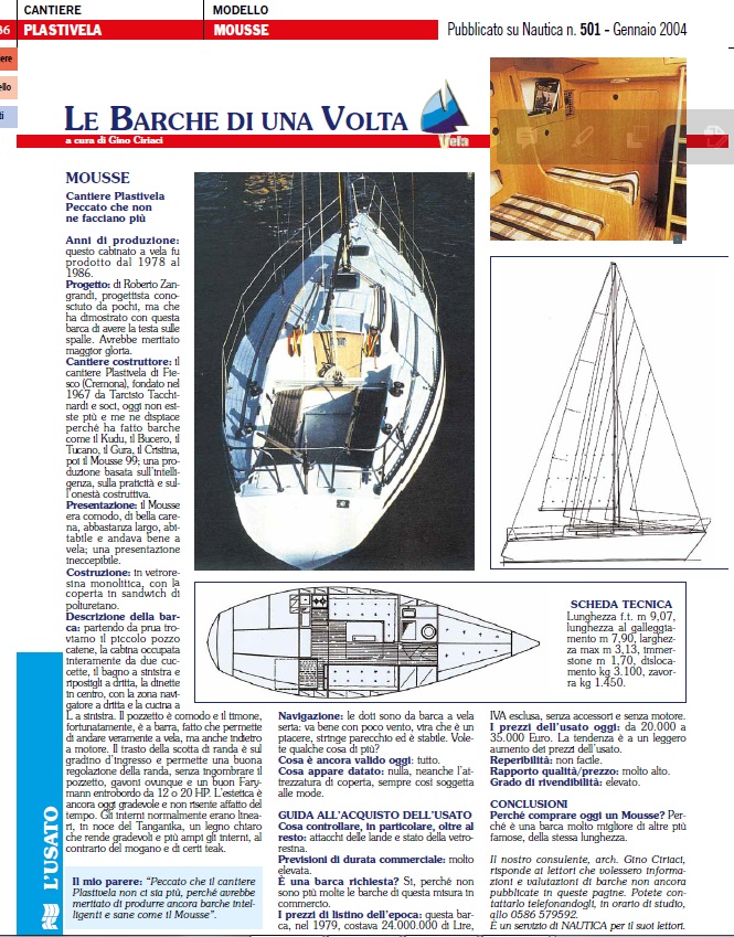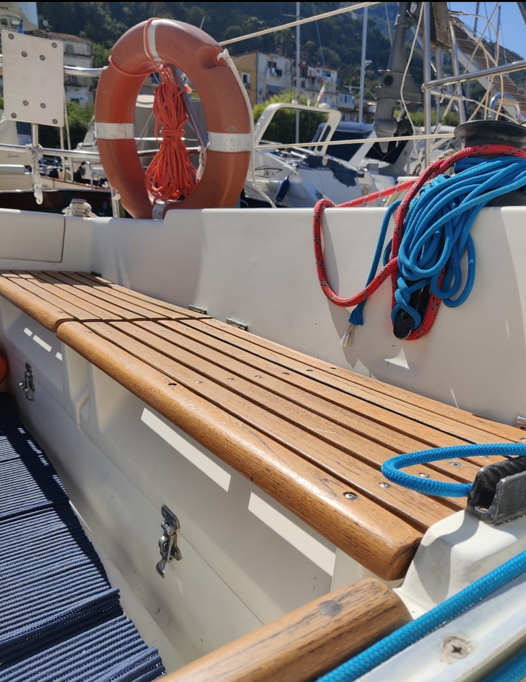 Revisión completa 2025:- Casco reconstruido mayo 2025- Motor Nanni-Kubota 21cv desembarcado y revisado 2025 – gran eficacia y muy bajo consumo- Motor de arranque nuevo- Molinete eléctrico revisado – compartimento de la cadena restaurado 2025 – Salidas al mar 2025 – Autoclave 2025