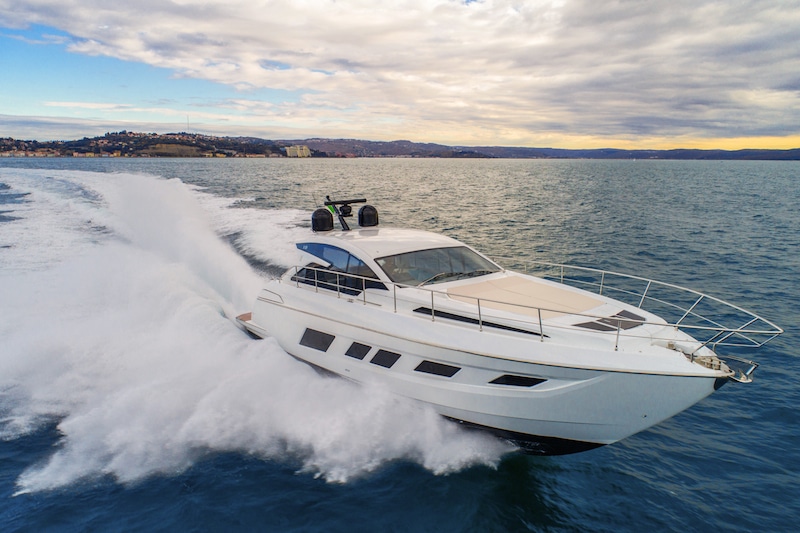 Filippetti S55 velocità in marePer gli armatori che hanno invece capito lo spirito di questo yacht, è disponibile la versione con una coppia di Man V8 1200 che, a dispetto dell’omonimia nella sigla, erogano ben 1.200 cavalli ciascuno e consentono a quest’imbarcazione di raggiungere velocità prossime ai 50 nodi.