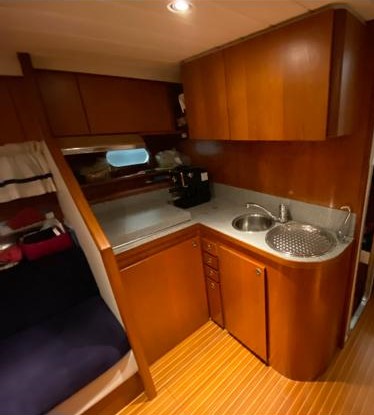 Générateur MASE 4, VHF 5 kW – Radar Autopilote Sondeur – GPS – Système d’extinction d’incendie dans la salle des machines – Garage pour annexe – Passerelle hydraulique escamotable – Chaudière 50 lt – Autoclave neuf – Chargeur de batterie neuf – Coussins de cockpit neufs – Coussins de poupe neufs – Taud de console neuf – Taud de cockpit – Plaque de cuisson 3 feux – Double évier – Réfrigérateur – Congélateur – Four à micro-ondes – Ice-maker – Réfrigérateur dans le cockpit – Stéréo dans le cockpit – Date d’expiration RINA 03/2029