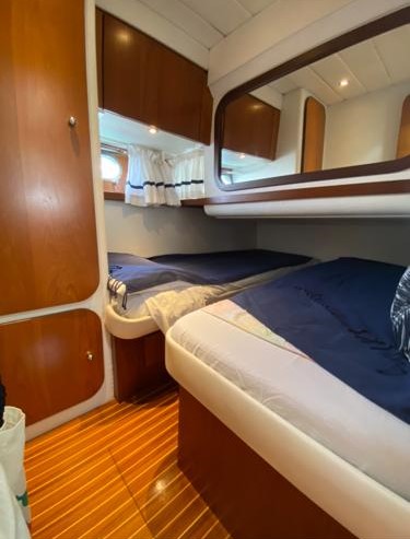 N. 1 cabine propriétaire avant avec sa propre salle de bain et cabine de douche – N. 1 cabine invité avec 2 lits et salle de bain de service avec cabine de douche – N. 1 cabine équipage simple avec toilettes