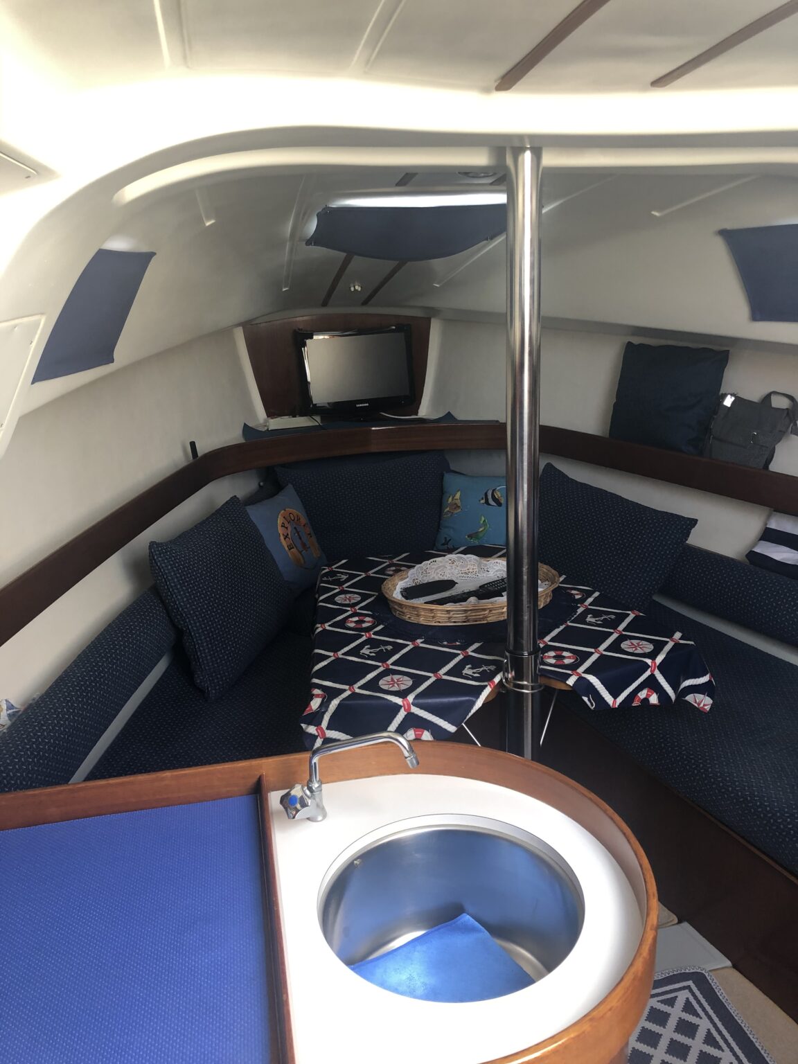 Bateau en excellent état, entretien régulier, équipement de bord 6 milles, radio WHF, profondimètre, anémomètre et affichage de la direction et de la vitesse du vent, chauffage dans la chambre, antenne TV et DT, écoutes et cordages récemment changés, faibles coûts d’entretien, complet avec couchette.