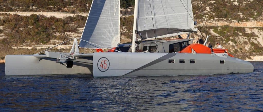 Per realizzare queste modifiche senza che l’impostazione del progetto fosse compromessa, per evitare quindi un eccessivo aumento dei pesi, il team di H3O ha previsto un massiccio lavoro di alleggerimento di tutte le strutture e delle pannellature interne, utilizzando un sofisticato e leggerissimo sandwich con pelle esterna in carbonio. Profondamente rivisti anche gli interni dei due scafi laterali che ora sono perfettamente simmetrici e hanno entrambi due cabine e un bagno. Per rendere più facili le manovre a vela è stata rivista anche la posizione e l’inclinazione delle derive laterali; ora anche in crociera e senza bisogno di un equipaggio professionista, X-Factor è decisamente a suo agio in virata.