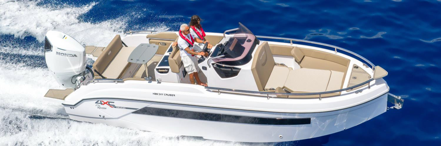 FRP H28 Day Cruiser è un elegante walk-around da 8,20 metri che si rivolge ai diportisti più esigenti, attenti allo stile e alla praticità. Progettato per offrire un comfort eccezionale, si consiglia in package con una motorizzazione singola da 300 cavalli e offre un allestimento che include aspiratore gas, divanetto e seduta di prua, zona living con lavello, tavolo di poppa, pompa di sentina automatica, salpa ancora elettrico e timoneria idraulica.