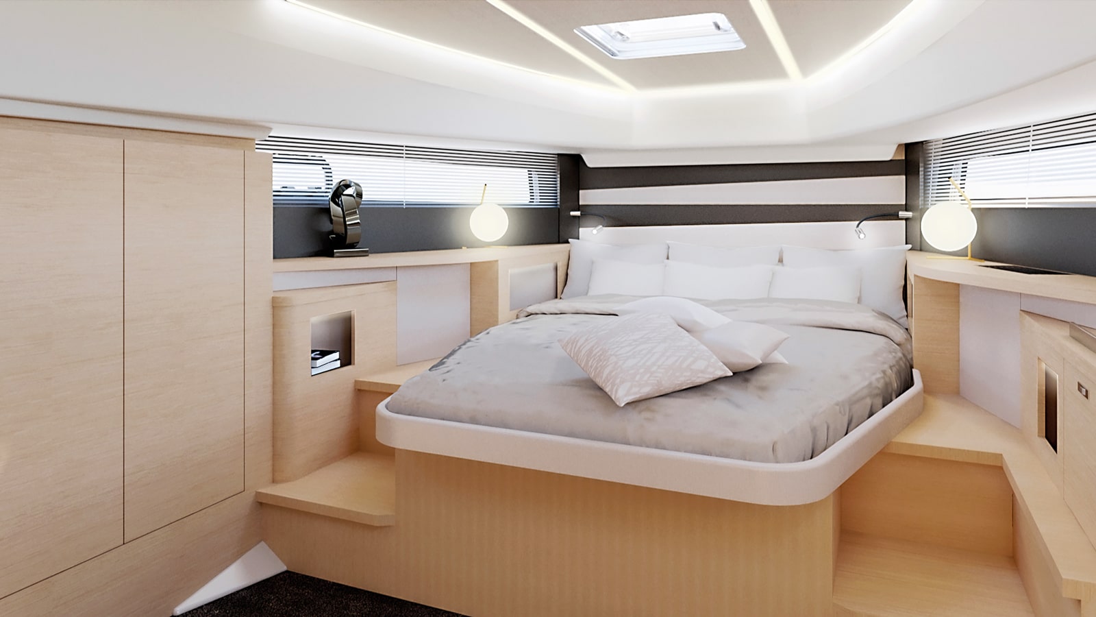 Lo spazio interno è molto luminoso, ampie finestrature nello scafo aiutano a creare un ambiente caldo, raffinato e gli conferiscono il senso di spaziosità. Due cuccette doppie con bagno e doccia separata permettono agli ospiti di vivere a bordo anche la notte nel pieno del comfort, utilizzando in maniera strategica gli spazi. Il nuovo Cap Camarat 9.0 WA Serie 2 di Jeanneau è adatto a chiunque voglia combinare il divertimento della crociera con il comfort e il relax all’ancora.