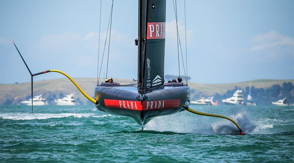 Acciuffato il comando della regata, il vantaggio dei nostri cresce di boa e in boa: i foil lavorano alla grande, l’acqua accarezza la carena e la barca italiana fa il vuoto dietro di sé, portandosi a oltre mezzo chilometro di distacco dagli inglesi quando siamo a metà gara e il resto va soltanto gestito.