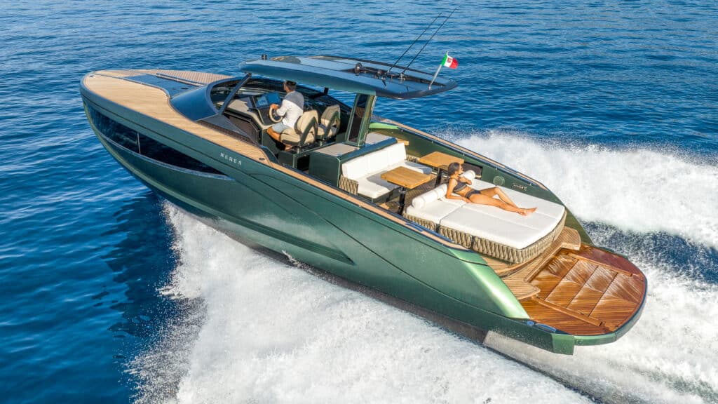 Ma non solo eleganza, anche rispetto per l’ambiente. Dovete infatti sapere che oltre alla vetroresina che compone lo scafo, Nerea Yacht ha scelto di utilizzare in alcune parti della struttura intera, la cosiddetta Oltremateria, un olio di malta assolutamente naturale ma anche molto resistente; ma non solo, infatti anche l’intreccio dei divani è realizzato con bottiglie riciclate, tutti dettagli che denotano grande attenzione nei confronti dell’ambiente, ma soprattutto la volontà di percorrere questo tipo di strada tanto performante quanto sostenibile. Chapeau.