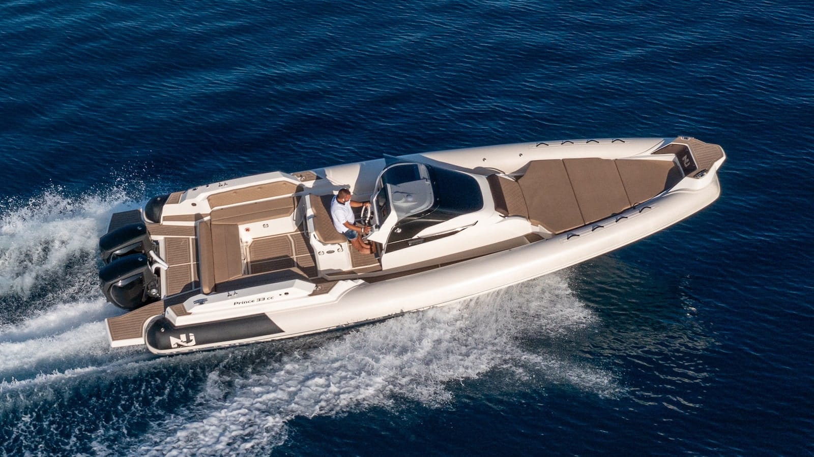 In grado di affrontare qualsiasi condizione meteo marina, grazie alla profonda V di prua e al deadrise da 25 gradi, il Prince 33 CC ha uno scafo in vetroresina e tubolari realizzati in Hypalon. Ben 12 i passeggeri che possono godere di tutto lo spazio disponibile a bordo, ivi incluso il prendisole di prua che occupa letteralmente l’intera area e il divano di poppa a U che, dotato di un tavolo ad azione elettrica, si trasforma in un altro prendisole o in tavolo da pranzo.
