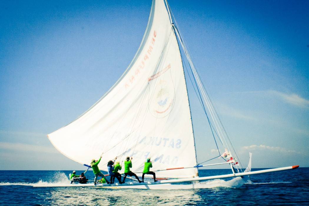 Niente attrezzature super tecniche, niente collegamenti satellitari, niente routier ne’ sofisticate strumentazioni di bordo. La Sandeq Race si corre a piedi scalzi, su canoe a bilanciere di bambu’ poco diverse da quelle usate tradizionalmente dai pescatori indonesiani, che di continuo si rompono e vengono aggiustate, con l’unico scopo di durare il tempo della gara e di correre veloci. Anzi, velocissimi: tra i 25 e i 30 nodi.