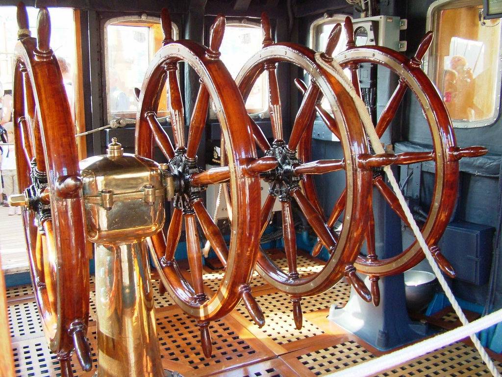 Ma, sull’Amerigo Vespucci, difficilmente gli otto uomini messi alle ruote avvertiranno quello che invece a molti di noi, se non a tutti, è capitato di avvertire mettendo mano alla ruota: un fastidioso gioco che crea quel ritardo fra il movimento della ruota e il momento in cui arriva la trasmissione al timone.