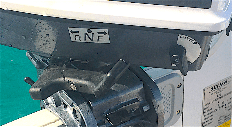 L’invertitore si aziona tramite una leva che prevede le classiche posizioni A-F-R, il gambo ruota comunque di 360° lasciandoci quindi ampia libertà nelle manovre. L’elica di serie è intubata, a 3 pale con Silent-block incorporato.