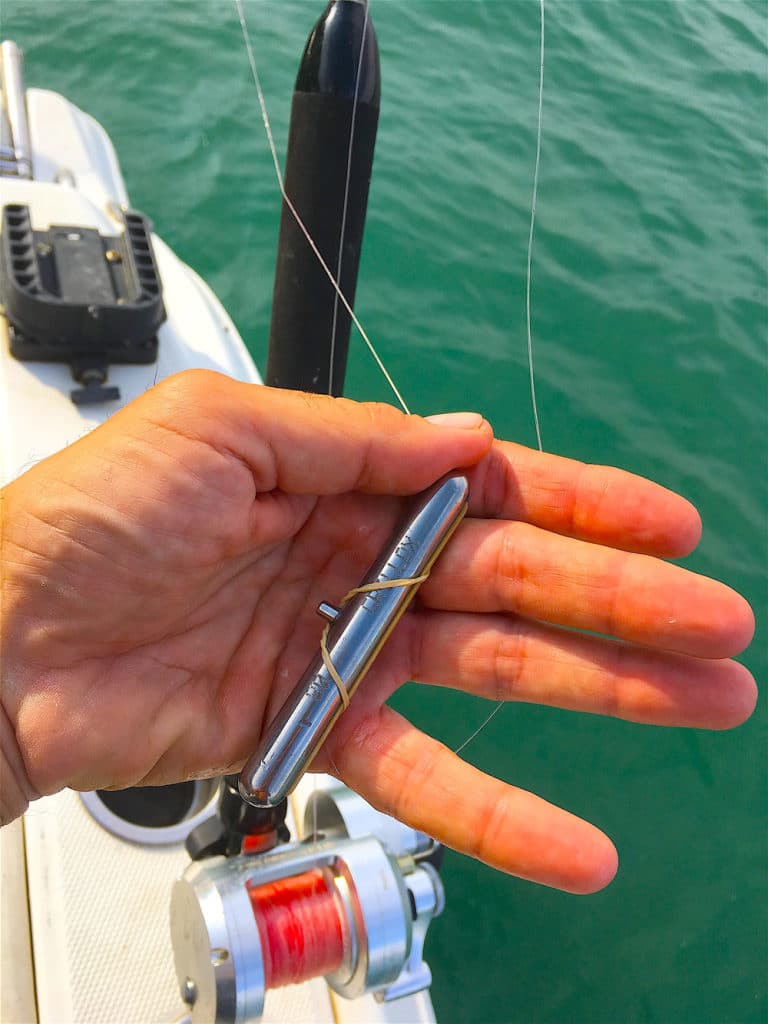 I “pelagici” usano stazionare a mezz’acqua quindi per “spigolare” conviene far battere la zavorra e dare qualche giro di manovella per alzare l’esca in modo che non rimanga incagliata nel fondale. Il nostro metodo preferito di piombare è tramite piombi idrodinamici in modo di creare il minor attrito possibile. Trainando è buon uso, specialmente in questi casi, compiere dei larghi semicerchi in modo di dare una sinuosità unica al sistema pescante.