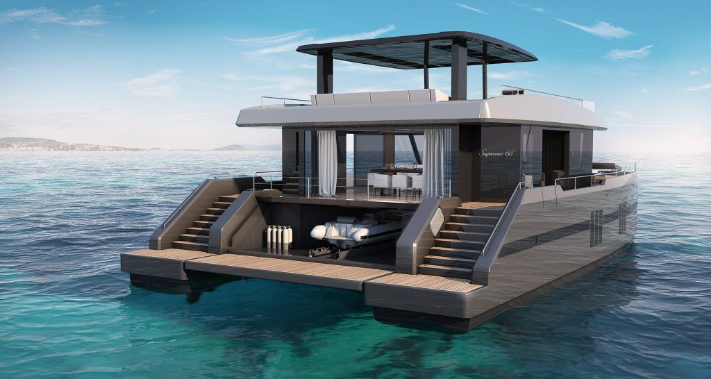 I Supreme 68 sono catamarani declinati sia in versione a vela sia in versione a motore. A Cannes li vedremo entrambi; per quanto riguarda il motore è una prima assoluta, mentre per quello a vela (lanciato ad aprile a Singapore) è comunque la prima volta che viene esposto in un salone europeo.