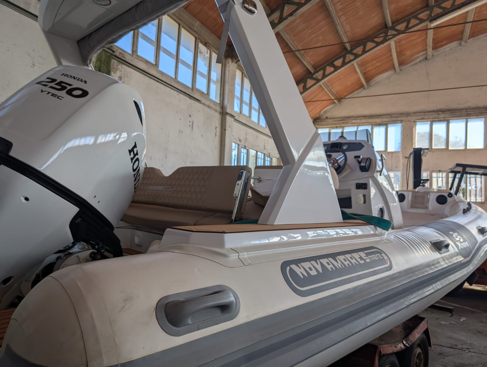 Gommone Novamares in ottime condizioni, come nuovo usato pochissimo, 42 ore di moto, costruito e varato nel 2023. Dotato di vano bagno con wc e lavandino, ampi gavoni posteriori e anteriori, tendalino per tutta la lunghezza dello scafo, ampio prendisole anteriore, dinette posteriore trasformabile in prendisole, consolle biposto, rollbar, dotazione sicurezza entro 12 miglia, ganci e cinghia per alaggio, GPS, ecoscandaglio, contagiri, verricello elettrico ecc.