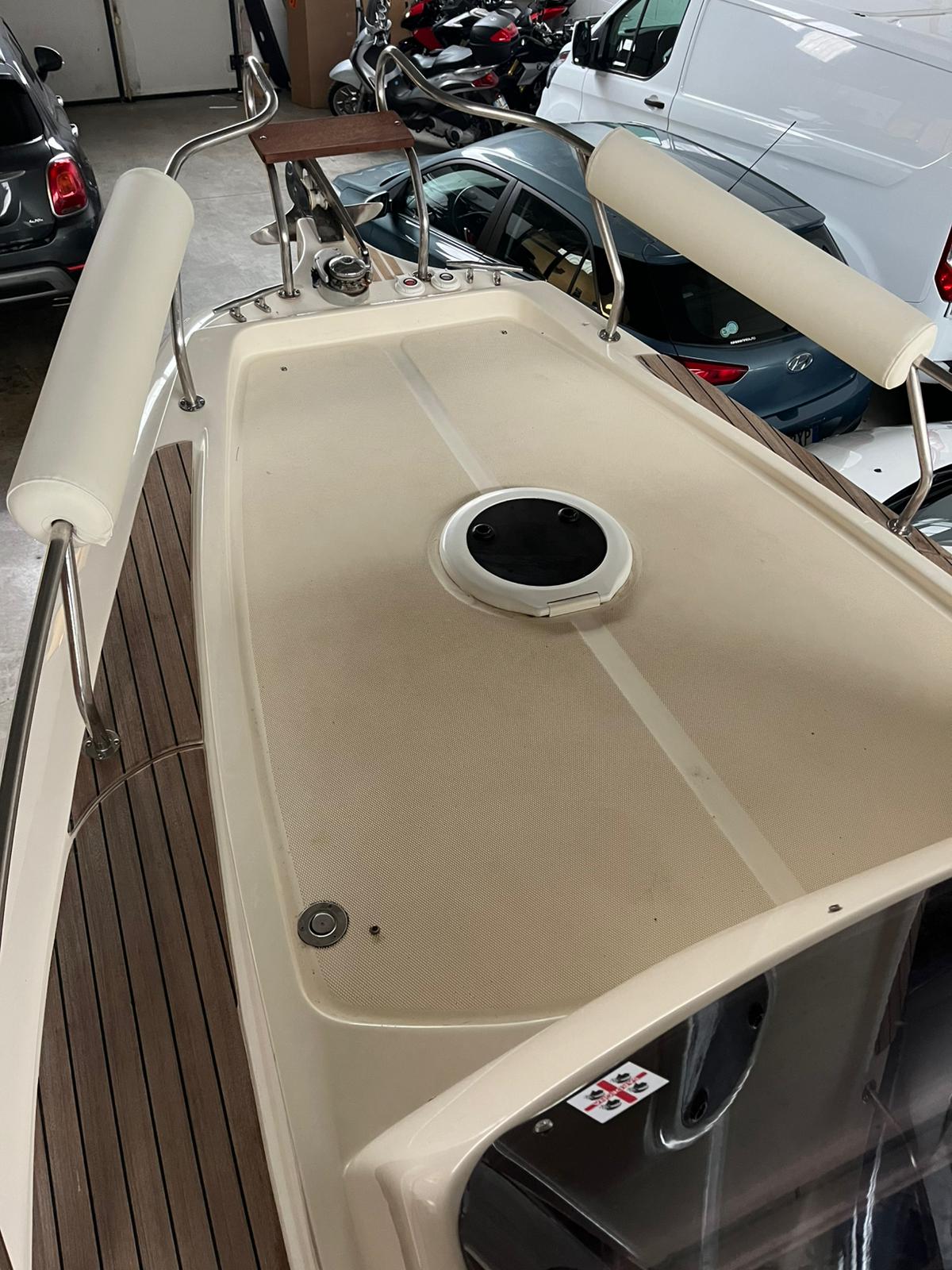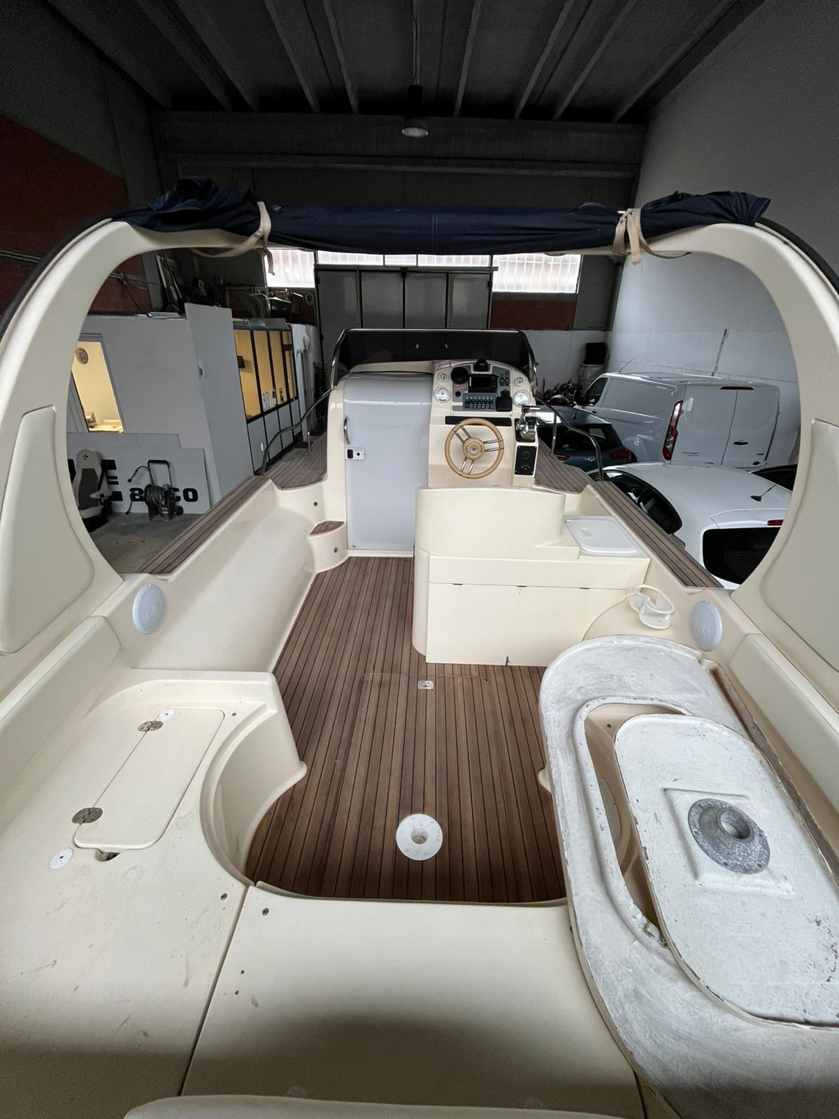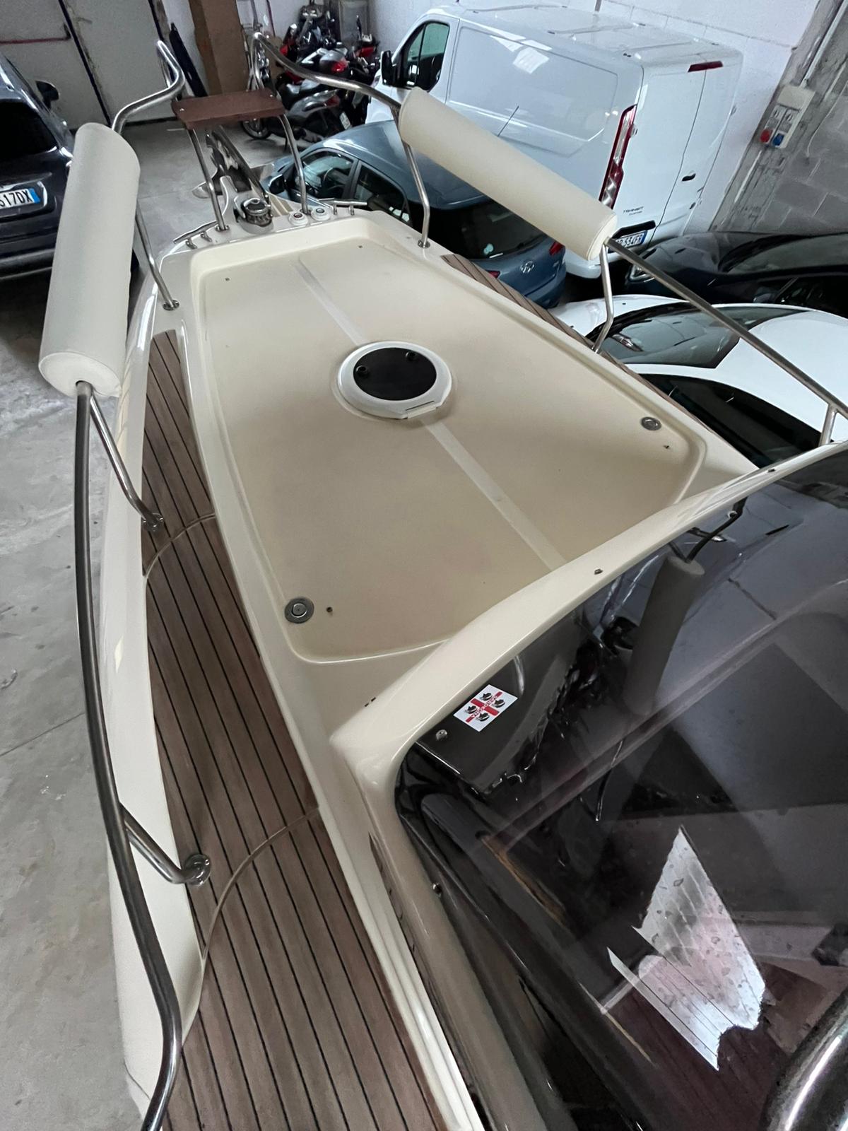Boat.Hub propone in vendita bellissimo gommone Revenger 25.50 con motore Mercury verado 225cv con manetta elettronica. Questo modello, lungo 7,60mt e largo 2,80mt, offre ottimi spazi interni che lo rendono ideale per uscite giornaliere o anche notti in rada, nello stesso tempo risulta veloce e confortevole in tutte le condizioni grazie alla carena di derivazione Sacs. A poppa è presente un ampio prendisole che può trasformarsi in dinette con tavolino, a prua è presente un secondo prendisole mentre in cabina troviamo un letto matrimoniale con wc. Nel 2025 sono stati svolti parecchi lavori quali: legni chiari in cabina nuovi – Gps/eco nuovo – cuscineria interna ed esterna nuova – manutenzione completa al teak – antivegetativa nuova – tagliando completo di girante al motore – volante nuovo – luci ambiente interne blu nuove – scaletta nuova – conta catena nuovo con sdoppiatura comando (console e prua)