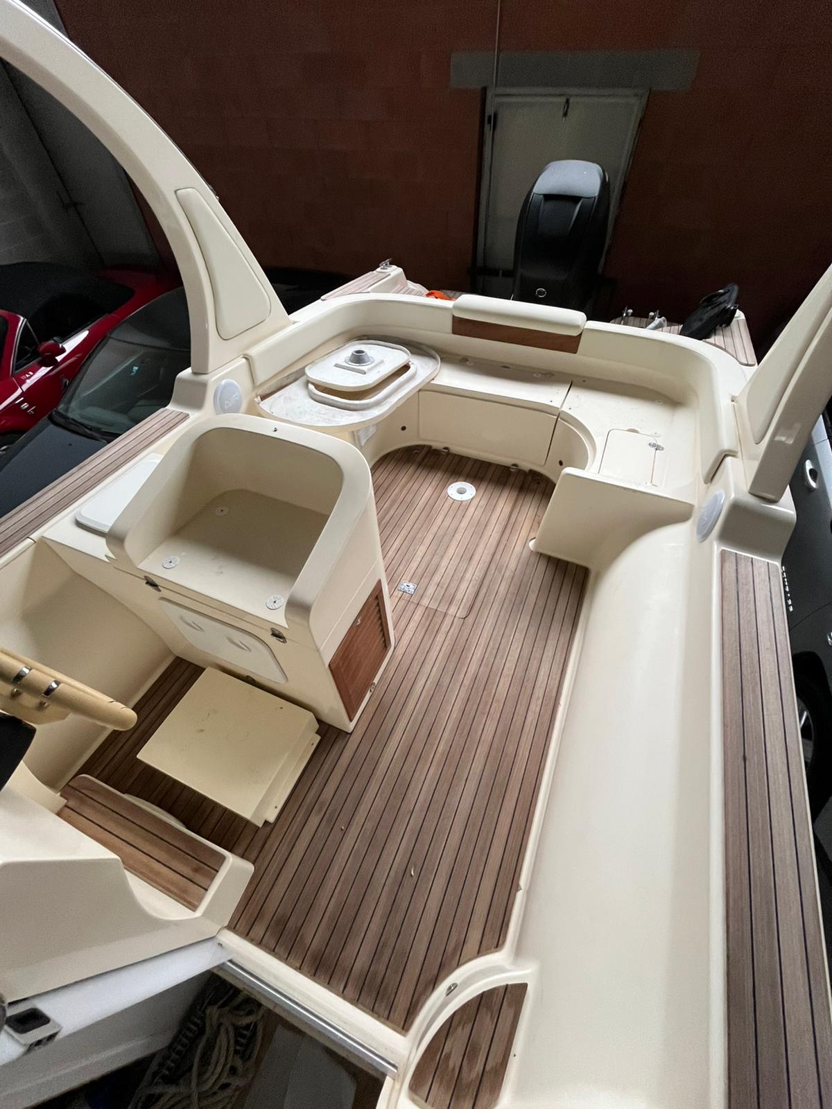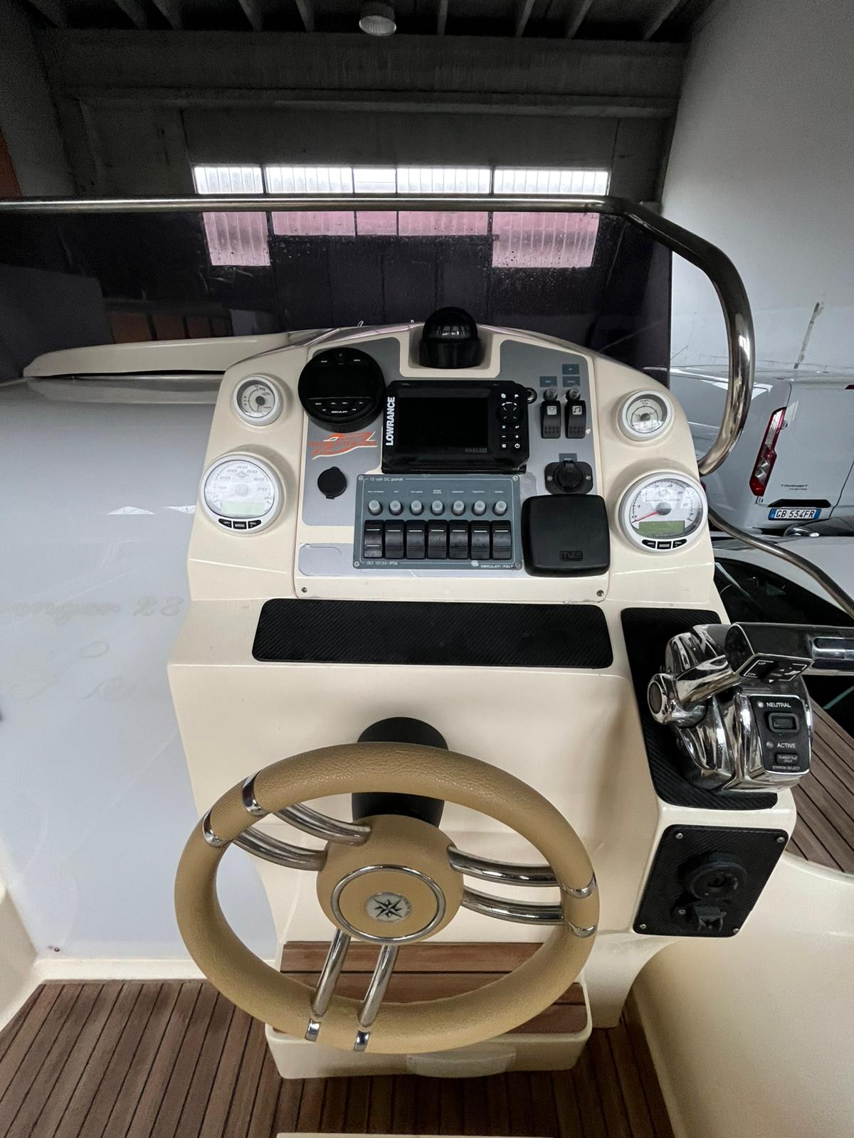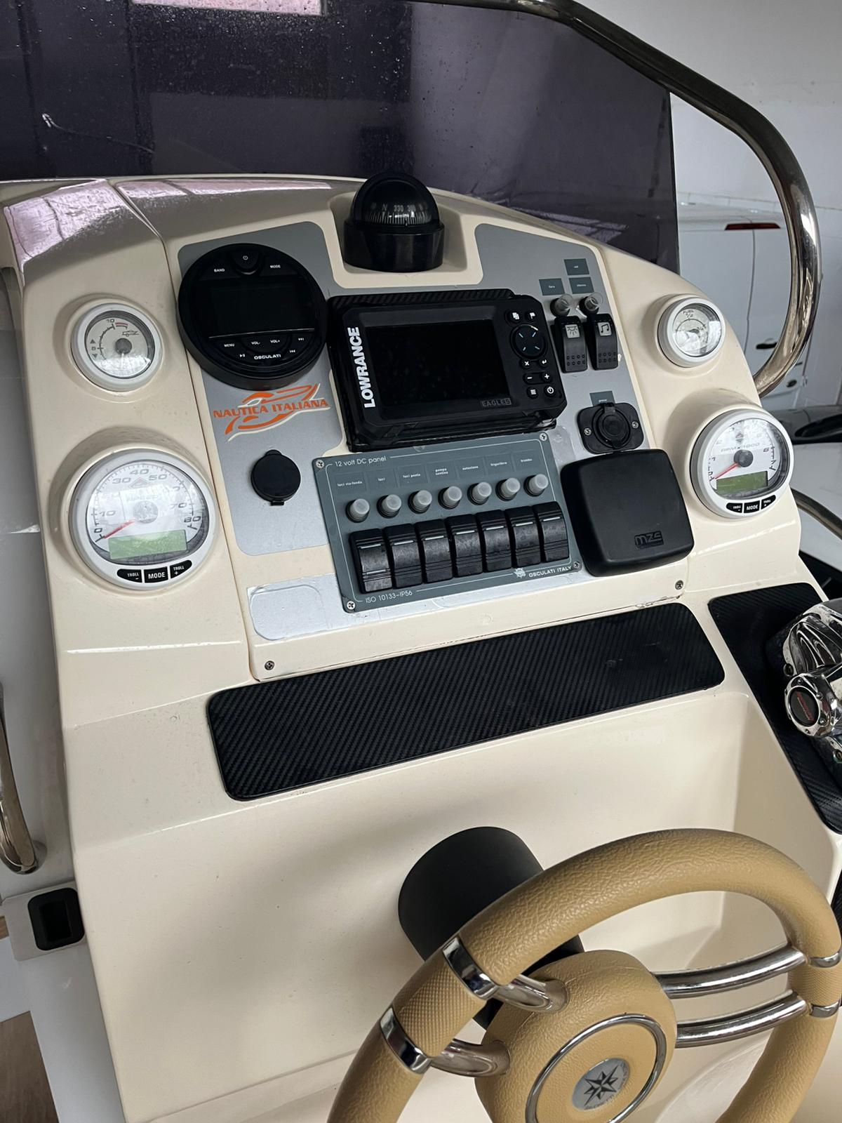 Boat.Hub propone in vendita bellissimo gommone Revenger 25.50 con motore Mercury verado 225cv con manetta elettronica. Questo modello, lungo 7,60mt e largo 2,80mt, offre ottimi spazi interni che lo rendono ideale per uscite giornaliere o anche notti in rada, nello stesso tempo risulta veloce e confortevole in tutte le condizioni grazie alla carena di derivazione Sacs. A poppa è presente un ampio prendisole che può trasformarsi in dinette con tavolino, a prua è presente un secondo prendisole mentre in cabina troviamo un letto matrimoniale con wc. Nel 2025 sono stati svolti parecchi lavori quali: legni chiari in cabina nuovi – Gps/eco nuovo – cuscineria interna ed esterna nuova – manutenzione completa al teak – antivegetativa nuova – tagliando completo di girante al motore – volante nuovo – luci ambiente interne blu nuove – scaletta nuova – conta catena nuovo con sdoppiatura comando (console e prua)